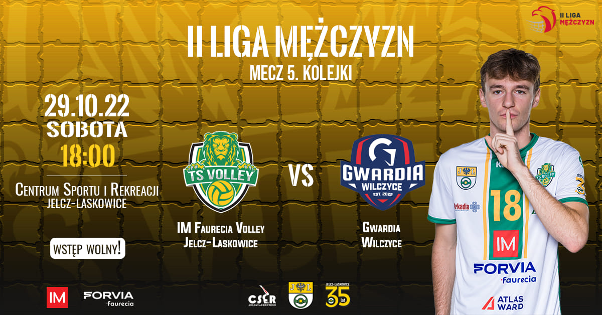 Zespół IM Faurecia Volley zajmuje po 4 kolejkach pozycję lidera grupy 3 rozgrywek II Ligi Siatkówki z dorobkiem 10 punktów. Stawka jest jednak bardzo mocno spłaszczona, a zajmująca 6 miejsce ZAKSA Stzrelce Opolskie ma do naszej drużyny 3 punkty straty. Oczko mniej ma nasz najbliższy przeciwnik - Gwardia Wilczyce plasująca się na 7 pozycji.